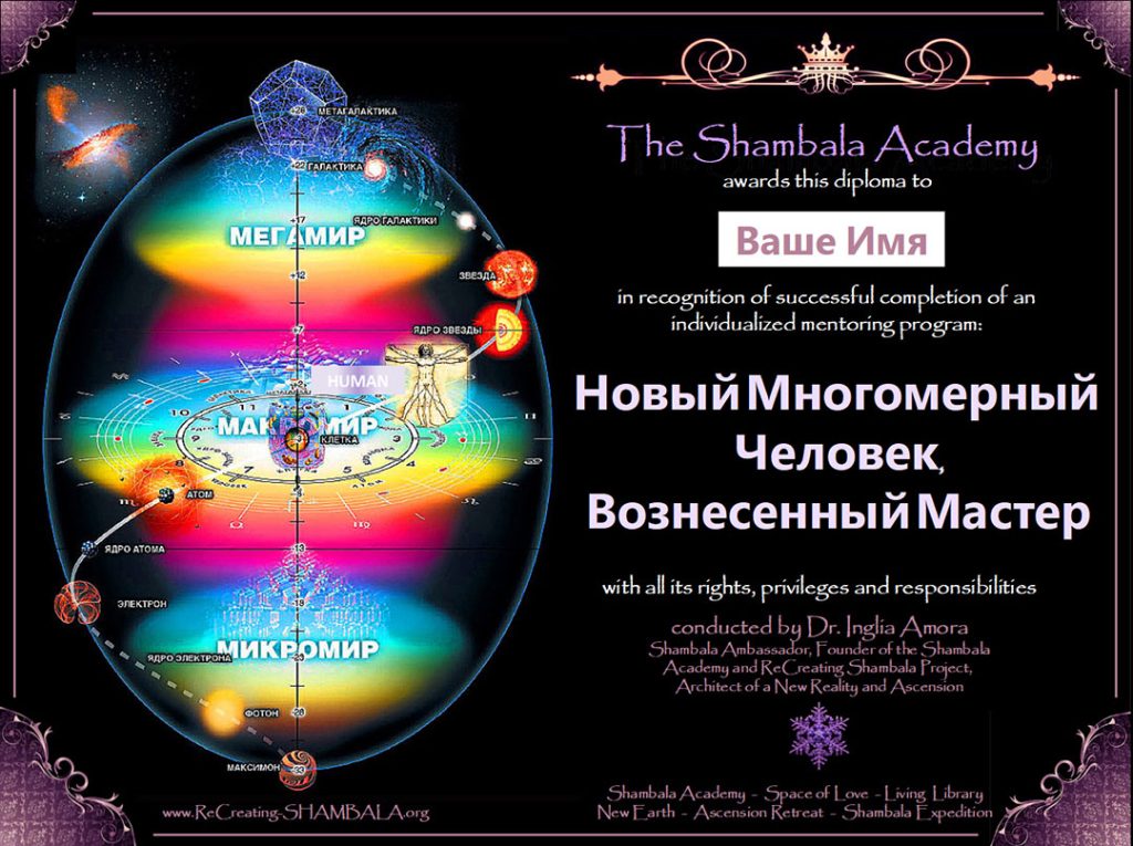 Академия Шамбалы представляет эксклюзивное многомерное образование, призванное привести всех учащихся в состояние как личного блаженства, так и глобального рая. Это священное путешествие интенсивного образования и практик, исследует науку, метафизику, духовность и психологию, а также возвышенные энергии и воодушевляющее творчество, предлагая разрешение внутренних проблем наряду с проблемами сегодняшнего мира. Эта программа открывает доступ к волшебному межпространственному порталу реальности и пробуждает знания, таланты и мудрость Первоистоков. Развитие многомерного осознания в параллельных реальностях поможет вам начать процесс алхимического преобразования любых блокировок, достичь просветления и полностью раскрыть свой потенциал для гармоничного воссоединения со Вселенной. Вы исследуете внутренний потенциал, который раскрывает сознание Единства, новые перспективы и вдохновение в создании наилучшего будущего для успешного выполнения вашей миссии на Земле. Вы также узнаете о просветлении, о природе Души, фрагментации Души, близнецовых пламенах и родственных Душах, о духовном и физическом Вознесении, а также о том, как создать свое тело вечного кристального света и многое другое.